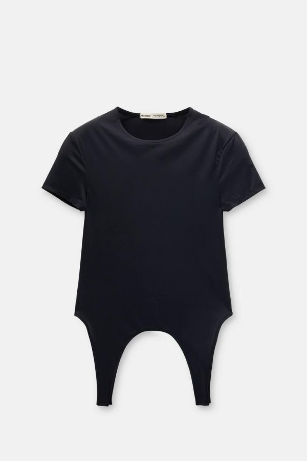 Slim Fit Short Sleeve T-Shirt With A Crew Neckline And Ties At The Hem. Made Of Slightly Stretchy Polyamide Fabric. Composición