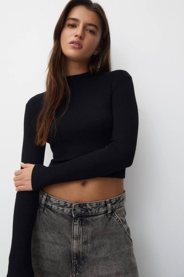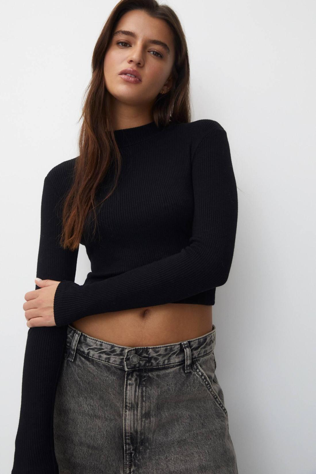 Long-Sleeve Top In Soft Knit Fabric, With A Mock Neck And Slightly Elasticated. Composición