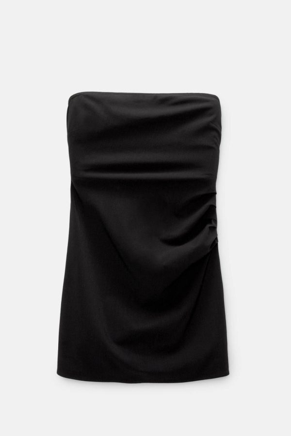 Short Dress With A Strapless Neckline And Side Gathered Details. Made Of Stretchy Fabric.