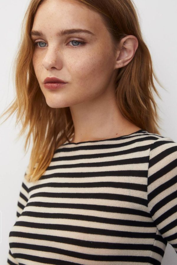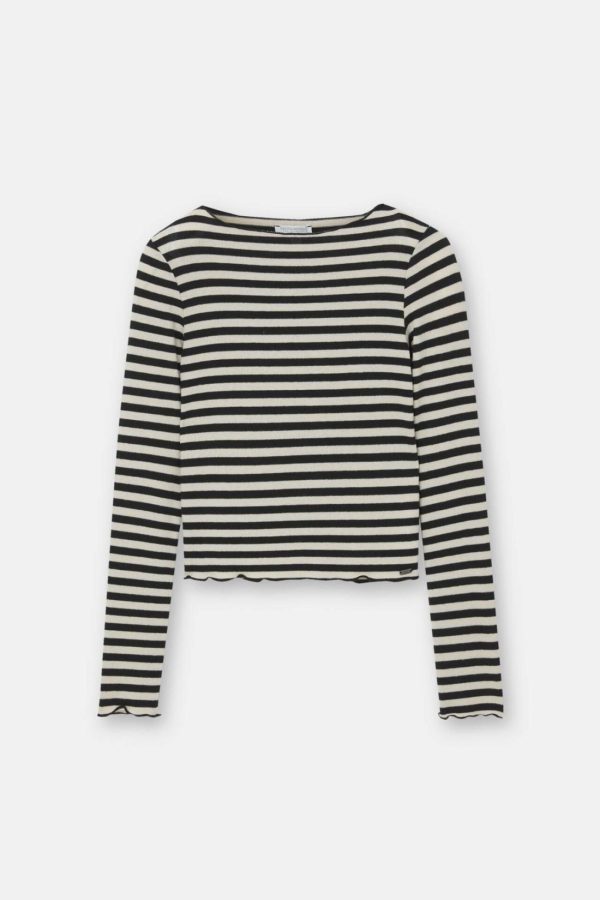 Striped T-Shirt With Long Sleeves And A Crew Neck. Composición