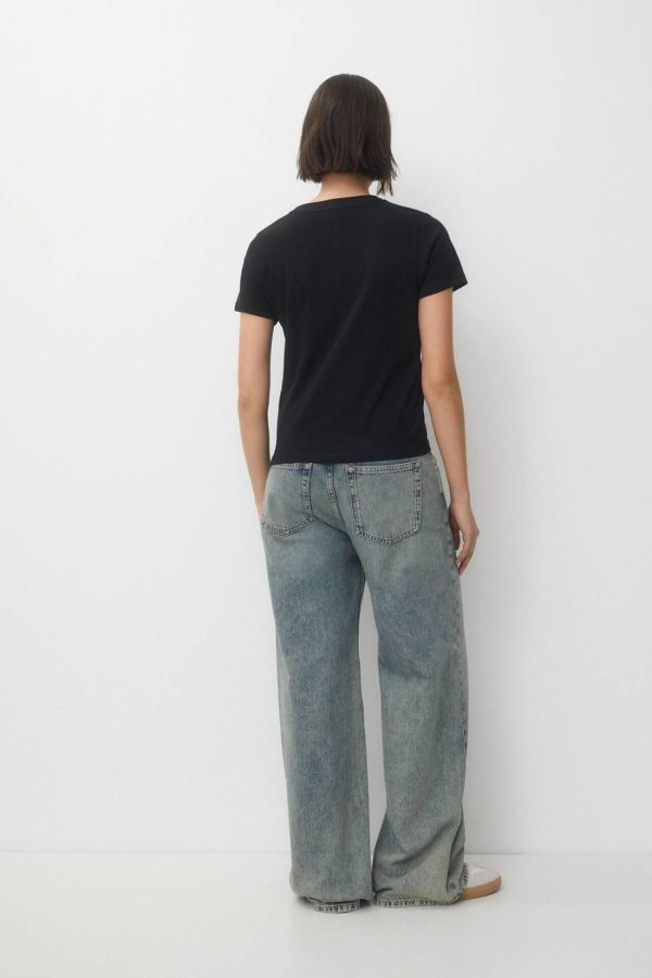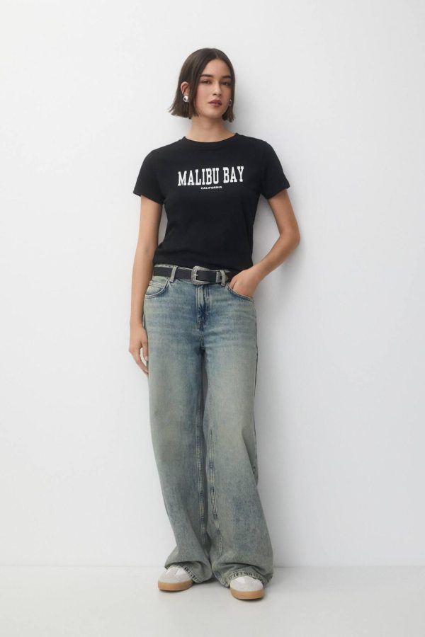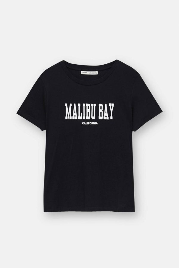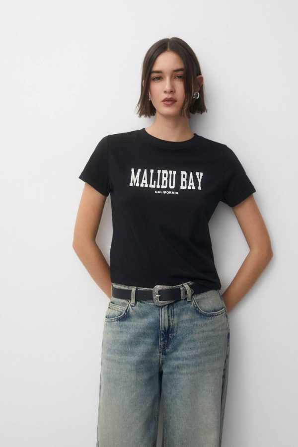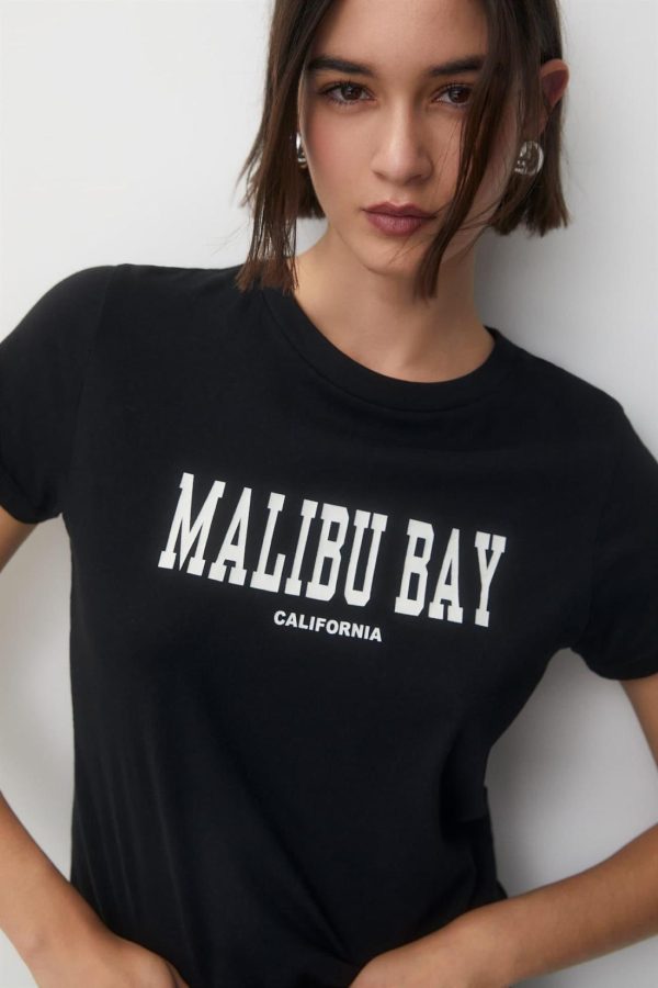 T-Shirt With Front Slogan Black | Women Short Sleeves