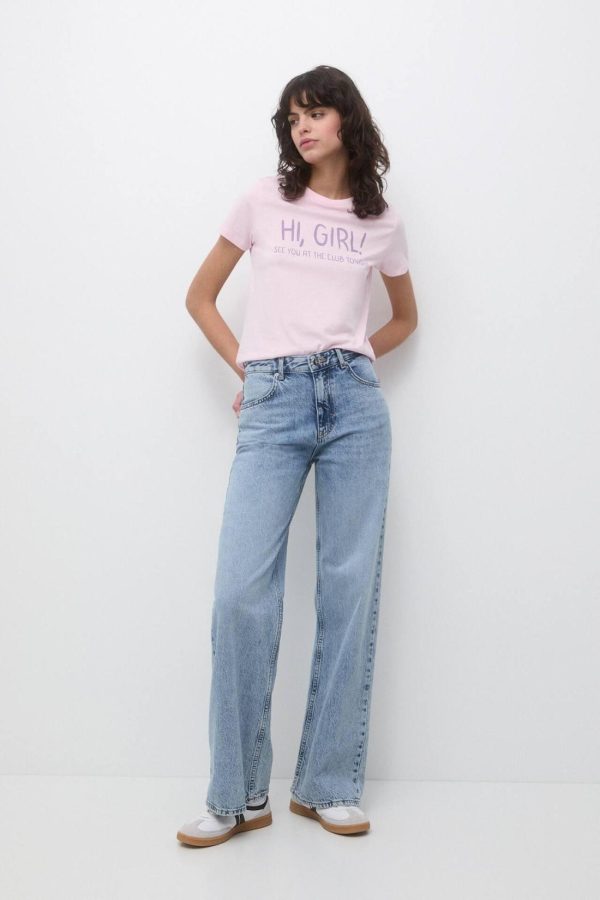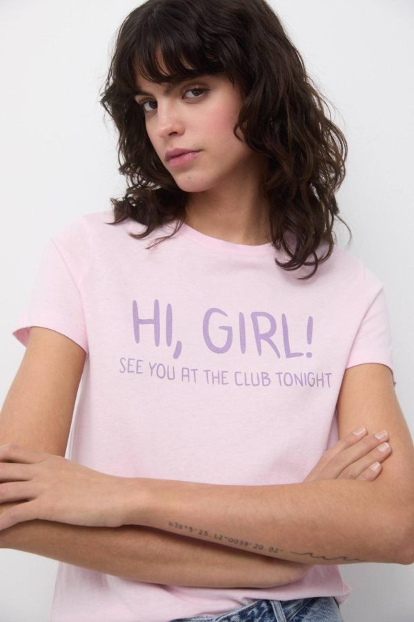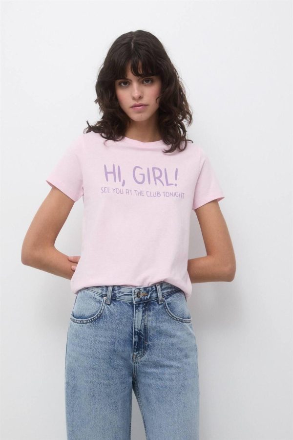 T-Shirt With Short Sleeves And Slogan Pale Pink | Women Short Sleeves