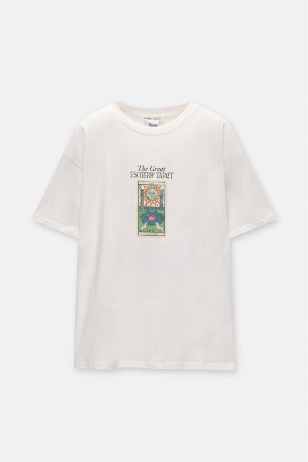 Short Sleeve Round Collar T-Shirt With A Tarot Graphic. Made Of Cotton. Composición