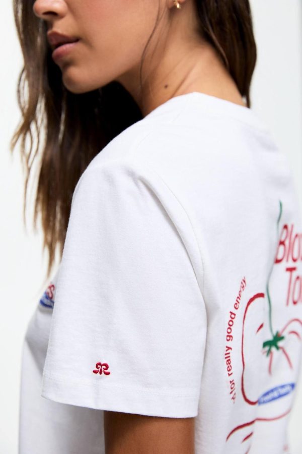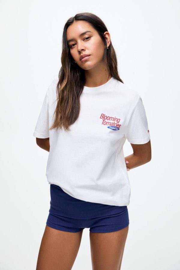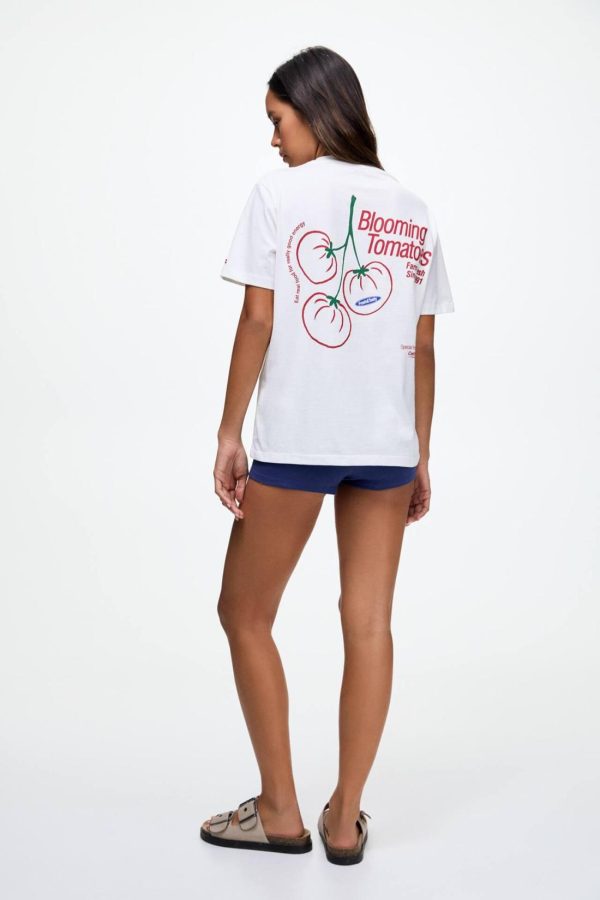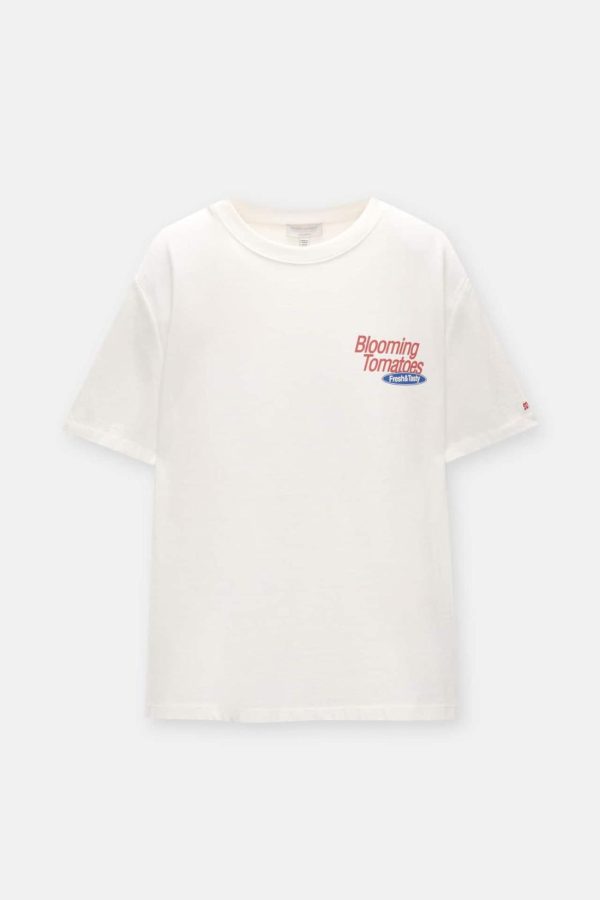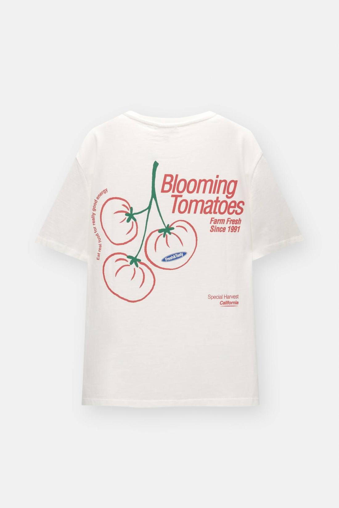 Short Sleeve T-Shirt With Tomato Print Detail And Round Collar. Made Of 100% Cotton. Composición