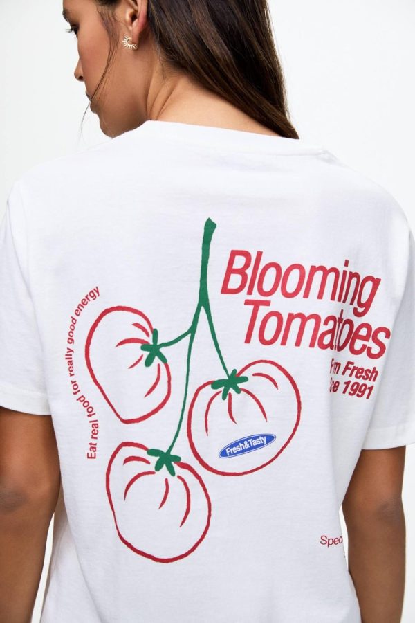 Short Sleeve T-Shirt With Tomato Print Detail And Round Collar. Made Of 100% Cotton.