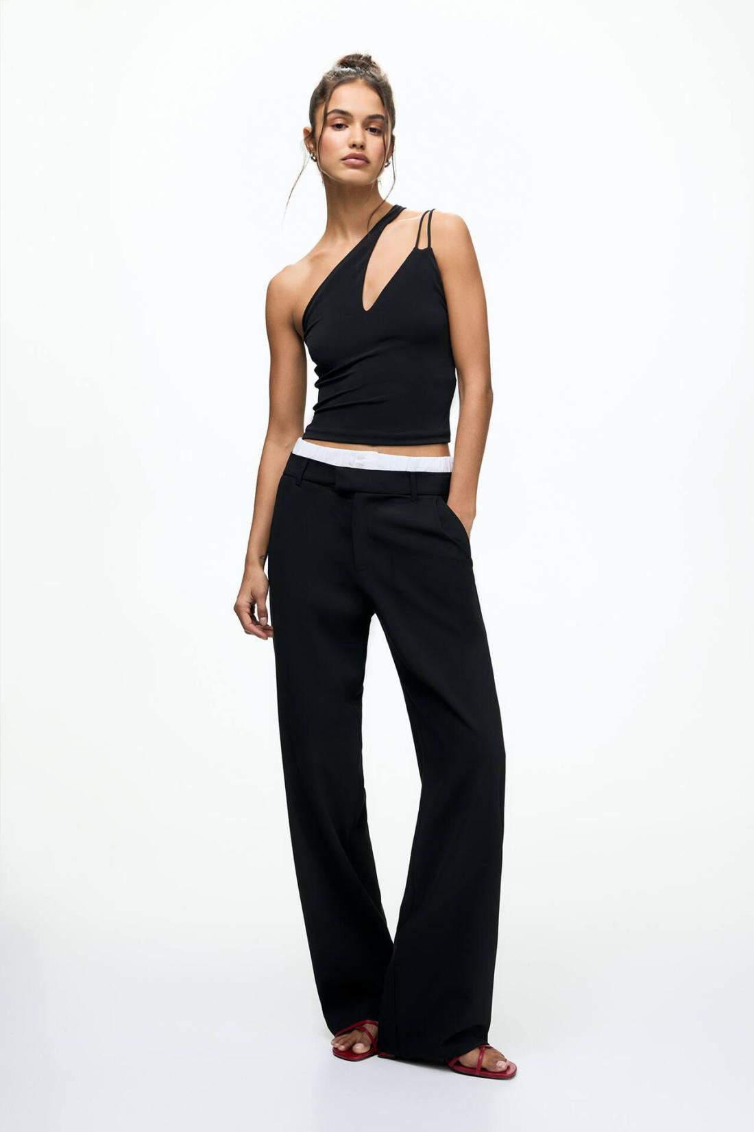 Asymmetric Top With Triple Strap Detail. Made Of Slightly Stretchy Fabric.