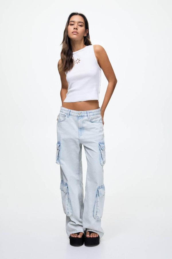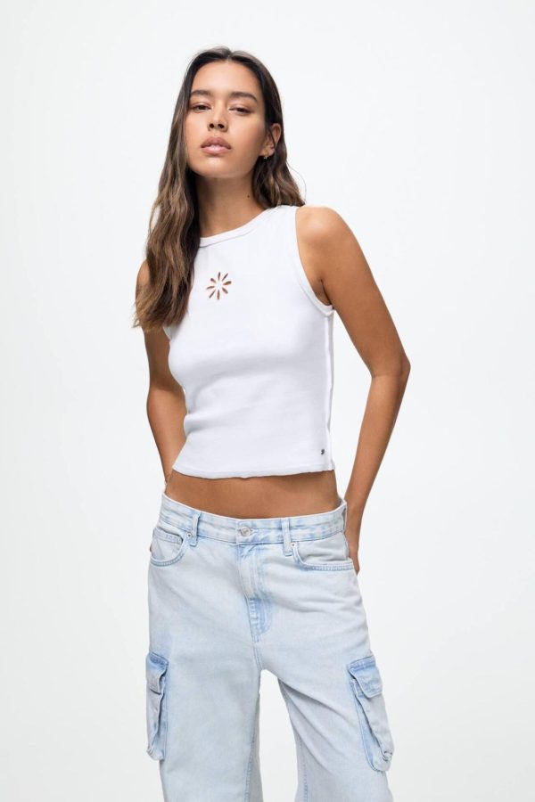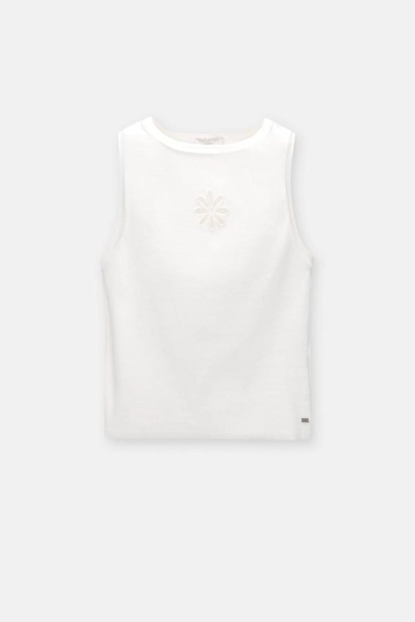 Crew Neck Tank Top With A Floral Crackled Detail On The Front. Made Of Washed Stretch Fabric.
