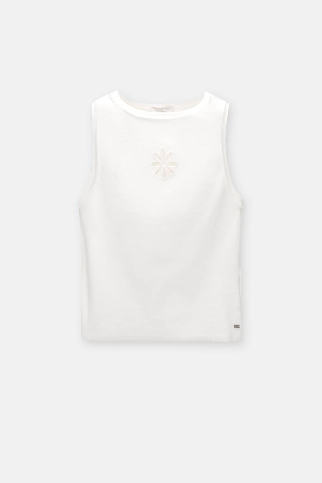 Crew Neck Tank Top With A Floral Crackled Detail On The Front. Made Of Washed Stretch Fabric. Composición