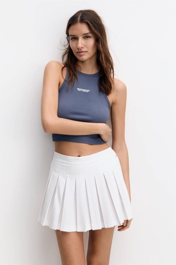 White Box Pleat Mini Skirt. Made Of Slightly Stretchy Fabric.